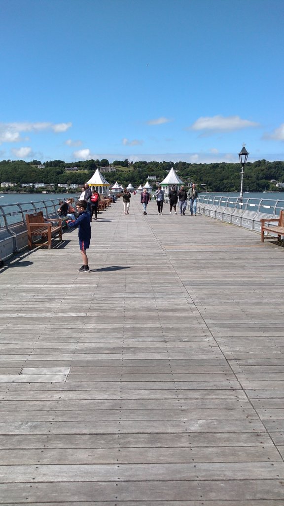 The salt laden breeze was sharp and fresh as I ambled along the coastal path. A delightful feature is the Pier at Garth. It’s not a gaudy, entertainment decked affair, just a straightforward affair reaching out across the straits to what seems like touching distance of the other side. A clutch of elegant pavilions provide coffee and cake ( noted for future visits ).