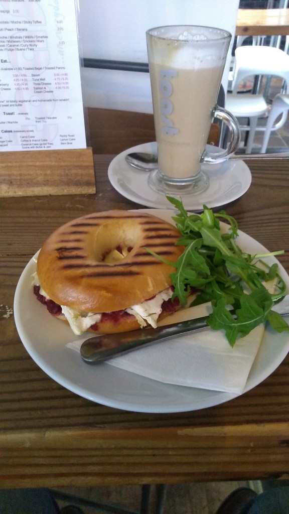 I was looking at at the cakes but then I noticed brie and cranberry as a toasted bagel filling, sorry, cheese and I turn into a human mouse. So I went for the savoury and not the sweet this time around. Good it was too.