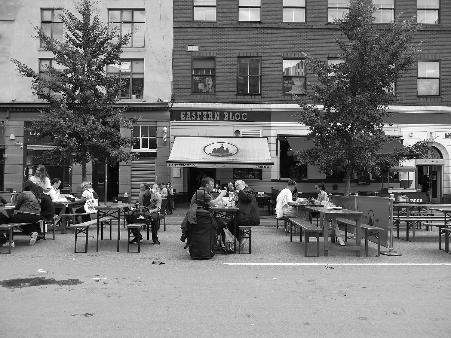 Luckily Manchester is one of the places that isn’t too far away and there’s still a wealth corners in the city of that I haven’t explored and places I haven’t been to in a while. On a recent journey in I had a walk through Stevenson Square, due to the Covid the bars along that stretch have adapted and placed tables out into the square so social distancing can be maintained and a semblance or normality start to return.