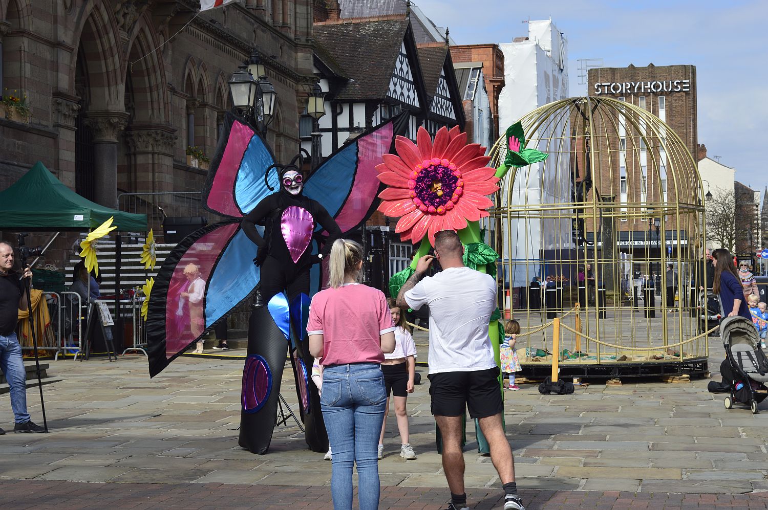 Open air events were on show by the Town Hall. The wide, part pedestrianized area is a perfect setting for these things. I’m not exactly sure what the theme was but it involved a butterfly, a flower and a gilded cage. Reminds me of an old music hall song.