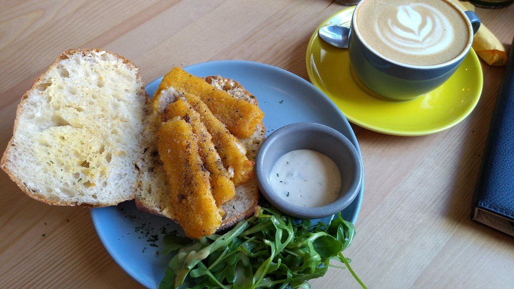 To continue the day. I arrived in Chester and decided to take a walk over to Hoole, it’s only a few minute walk from the railway station, it’s an area that was scheduled for demolition but wiser heads prevailed and it’s now an area of interesting independent shops. There’s a couple of places to eat, a personal favorite is The Little Yellow Pig. I got there, found a table and ordered me a fish finger ciabatta and as they say, it was proper nice.