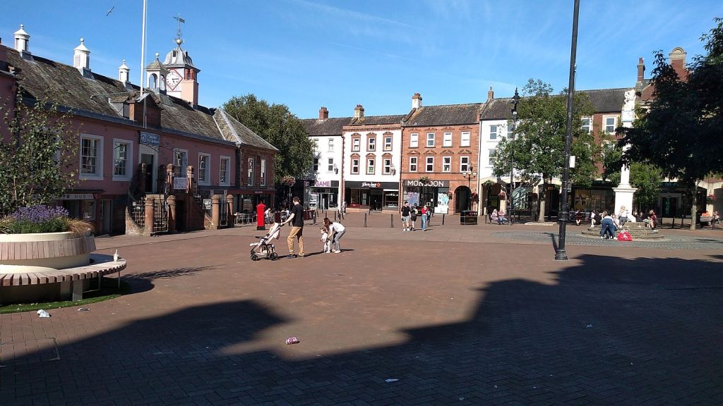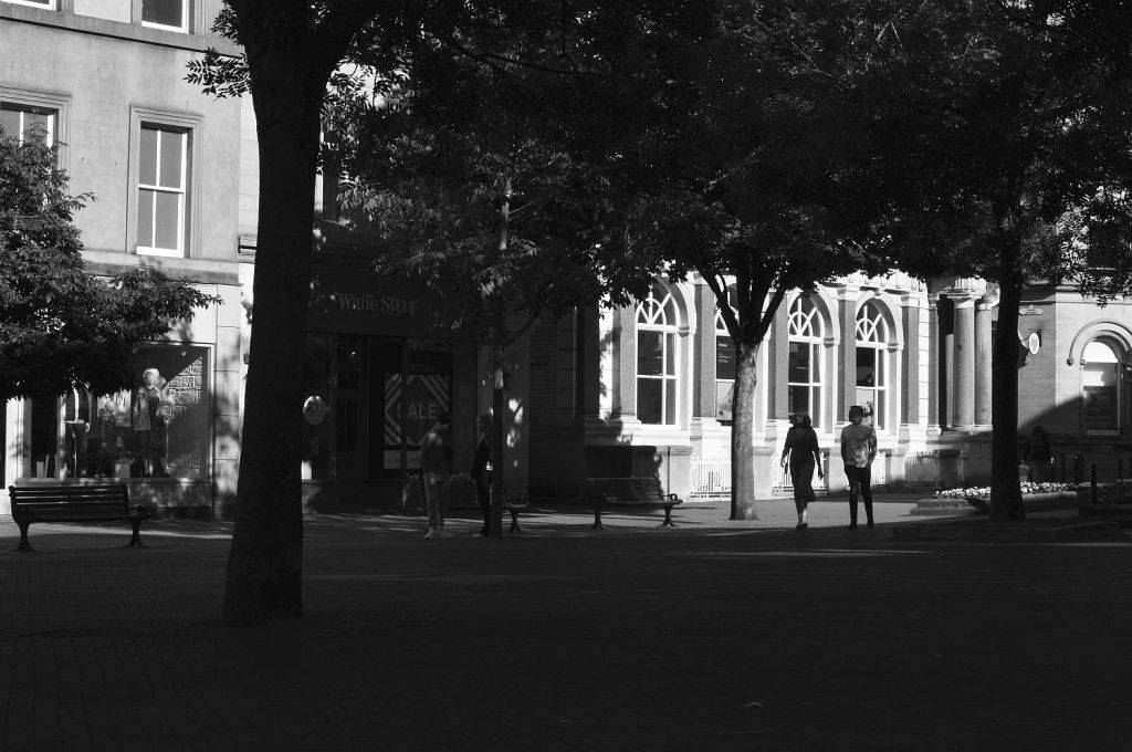 A summer evening has a quality all it’s own for me. I was in Carlisle at the weekend and the British summer came up trumps, not always something you can count on. The day had been hot with a capital H! After a walk around the city I took the train out to Maryport on the coast to make the most of any sea breezes before coming back into the city in the early evening. The worst of the hard baked atmosphere was ebbing away, the centre of Carlisle is not without trees that offer some shade and shelter. T had a last ramble around, the streets were quiet now. The shoppers has by and large gone home, only the ebbing tide of shopworkers, locking up, chatting, were left to drift across the streets. I took a seat on a bench under the trees and treated myself to a few moments of doing nothing, just sitting and letting the sound picture of the city wash around. Traffic buzzed in the distance, Jackdaws scrapped noisily for the scanty pickings on the pavement. A play with no dialogue but plenty of sound effects. My moment of reverie done it was time to search out a drink before catching the train back home.