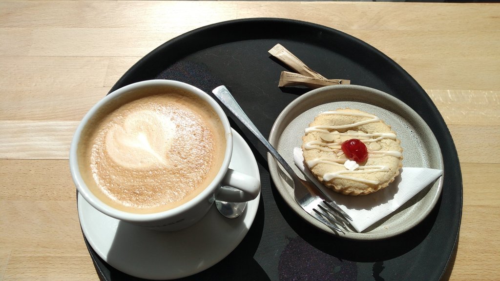 Tags: Avanti West Coast, Bakewell tart, cake, Cheshire, coffee, England, latte, photography, rail travel, railway station, railways, Warrington, Warrington Bank Quay