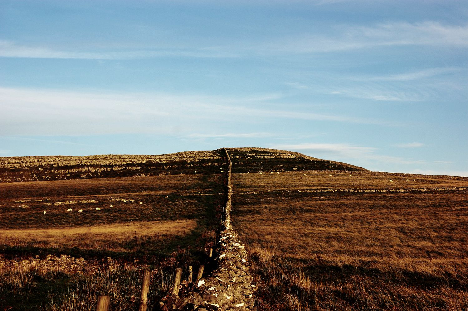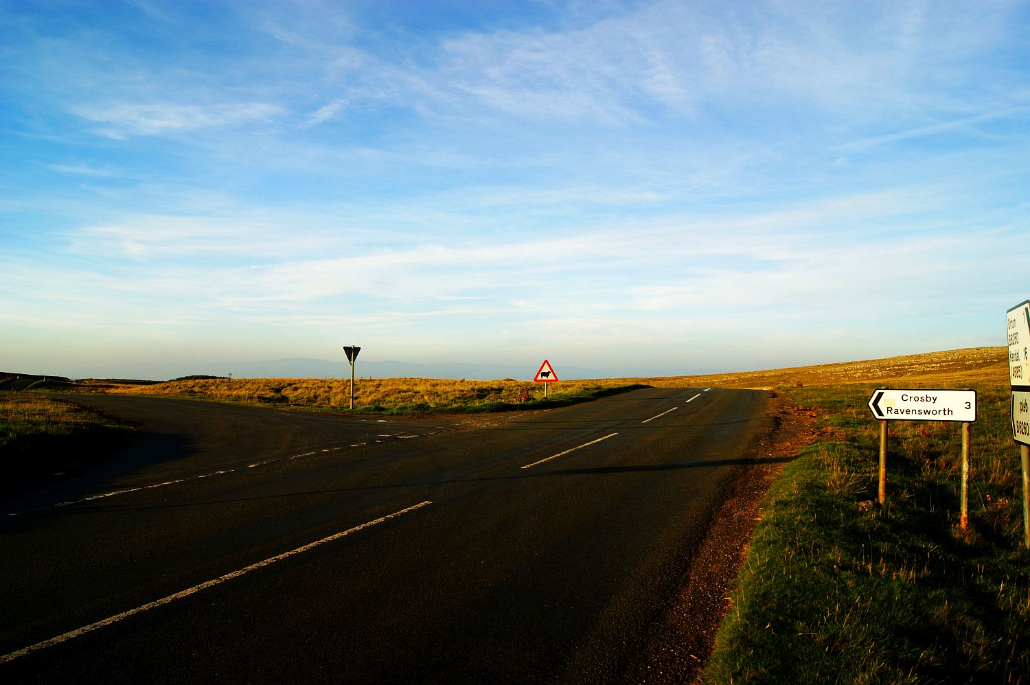 Theses shots are from a trip I made a while ago up towards Appleby. Actually I seem to remember I ended up at Richmond in North Yorkshire. I’d just left the M6 motorway at Tebay, I’m no fan of the motorway, okay they are great for cutting the journey time but even that is debatable if there’s roadworks etc en route. I climb up towards the village of Orton and headed on. It was when I reached the summit that I saw a layby and thought I would pull in and have a few moments to let the buzzsaw drumming of the motorway die down out of my ears and have a bit of a walk and a stretch. The countryside lay spread out like a giant’s jigsaw puzzle. Sun kissed and mellow, with feather like clouds layering the sky. I had to take a couple of shots didn’t I?