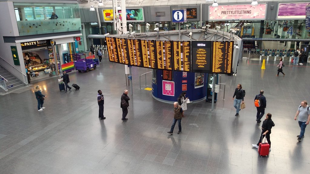So the morning finds me enjoying the pleasures of Manchester’s Piccadilly station. The posh one that handles the trains from somewhere called That London and other south facing places. I’m awaiting the arrival of my Welsh correspondent, Gareth the G-Man. It’s not the busiest of mornings on the station but there’s enough going on to entertain the idle observer.