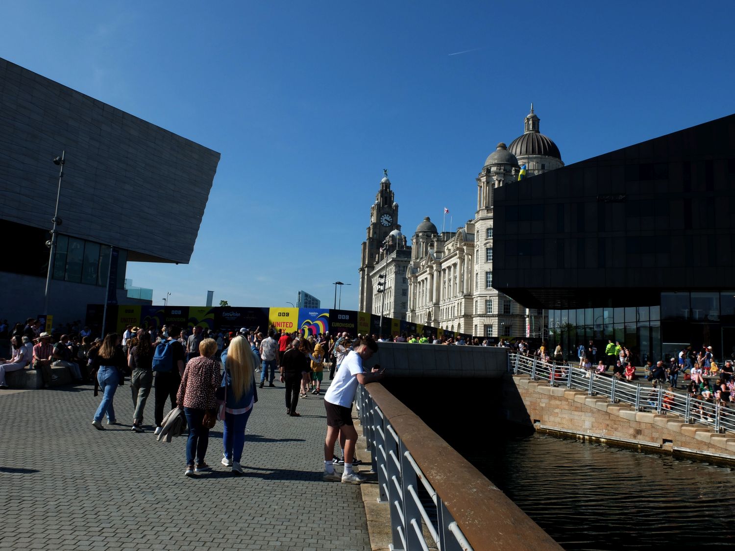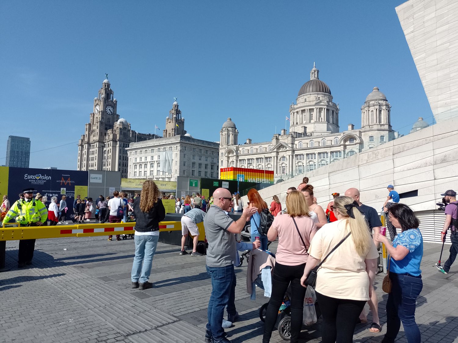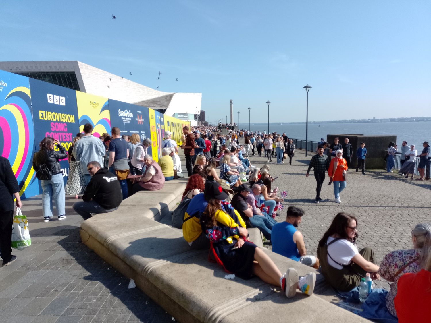 Finally I made it to the River and the Pier Head where the action was going to be taking place in the Liverpool Arena. This was the crowd magnet for the day and the sun was blessing the city and the waterfront. A Eurovision Village had been created as an overspill from the main venue and already it was full and by late afternoon the atmosphere was gearing up.