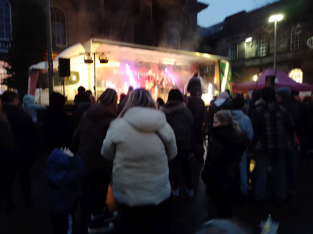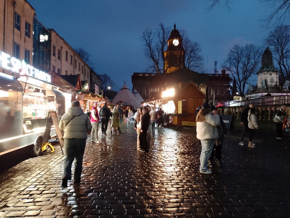 Okay, so picking up from the Kirkby Lonsdale entry. I landed back into Lancaster in the early evening. It was dark now though the rain had eased quite a bit. I needed the bus out to Morecambe and my B&B but as they are quite frequent I thought I’d take a walk around the celebrations for the switching on of the city’s Christmas lights, grab something to eat and a drink etc.