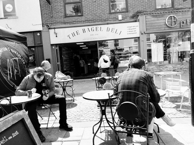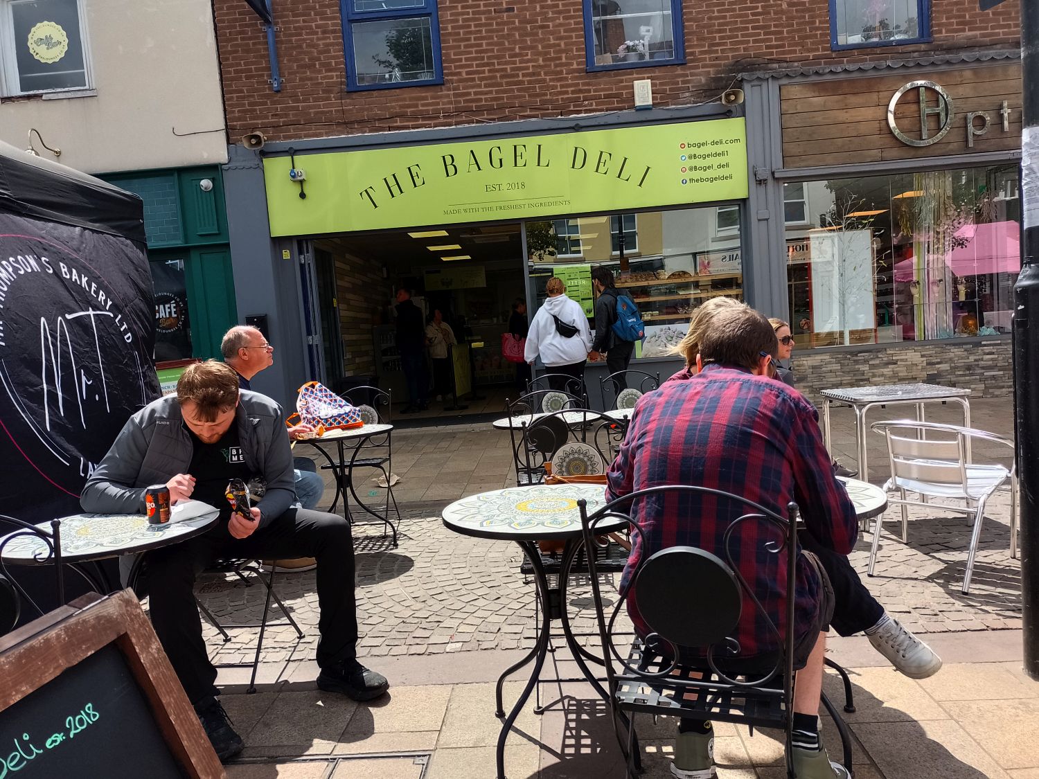 The weather was bright but what you might call “fresh” with a mischievous wind that was enjoying throwing its weight around, think boisterous three year old. Anyway first job on arrival was to sort out something to eat and after a walk about I decided on the Bagel Shop on Moor Street, one of the main streets forming the town centre.