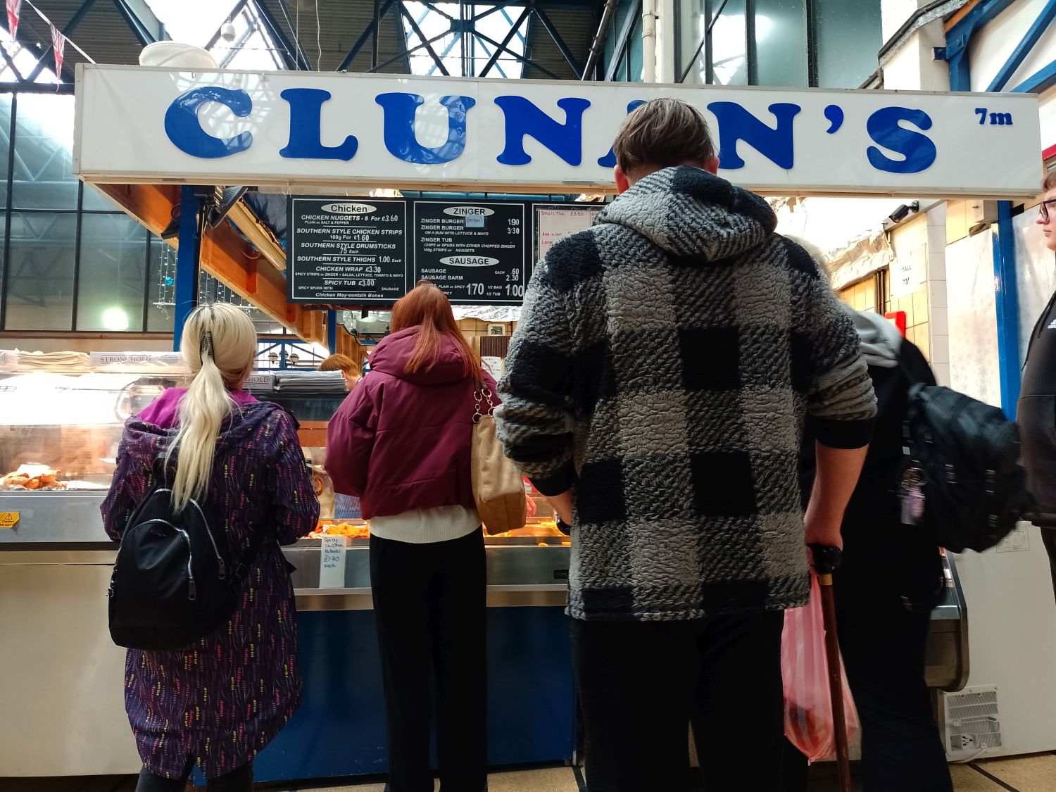 The market, as well as a large chunk of the town centre is undergoing redevelopment so things are in a bit of a limbo state for now. The market is hanging in there as it awaits it’s new home and the new order to arrive. I value a proper market, they aren’t not just a place to buy things, it’s the fragile social side of things. Where you meet friends, have a chat, catch up on the world outside your front door. A place where you don’t have to sit looking at your own wallpaper. Where a cup of tea and a pie in the cafe breaks what can be the empty normality of everyday life. A chance to be reminded that you do exist, that you have an identity.