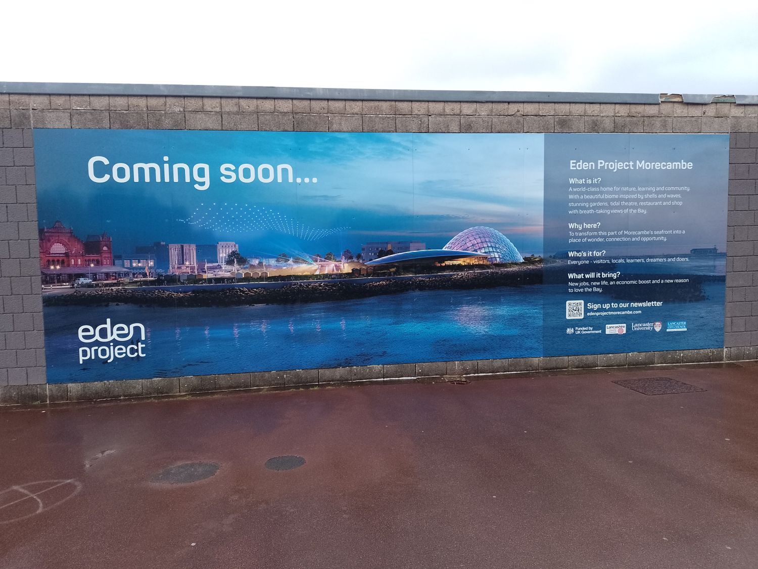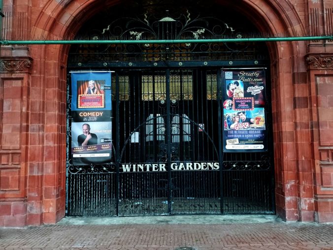 My walk around Morecambe didn’t follow any particular path, this is down where the Eden Project North will be setting down its roots. There’s been a lot of talking about it over the years, looks like things coub be starting to appear. I hope so, it would be the shot in the arm the town needs. I took this shot from the Stone Jetty, omce the earliest railway station in the town, the ferry point for the services across to Barrow in Furness and Fleetwood. It would have been a more industrial area than the genteel stretch of flowerbeds and Midland Hotel that’s there now. Like it says, the Winter Gardens on the prom. It’s restoration continues, step by step. I usually call by whenever I’m in Morecambe, keeping an eye on progress and also enjoying a scone and cream while I’m at it.The cold was beginning to bite so I walked up to the Eric Bartholemew ‘Spoons and had myself a curry to keep out the cold. I also had one of my favourite childhood reminders, a pint of RW White’s lemonade, yes I can here the tv ad running through my head as I type this. I had a window table so I could people watch Morecambe going by as I fed my face.A mini photo bomb of the market follows. It’s not the prettiest building in the world, it stands on what was the trackbed of the railway station. The railway staill serves the town though the ‘new’ station is now a stingy, two platform affair further out from the seafront, while the original, very elegant station building has survived as a performance venue called the Platform. The contrast between the old and the new would be along the lines of the original tells you you had arrived while the new one just says your here.