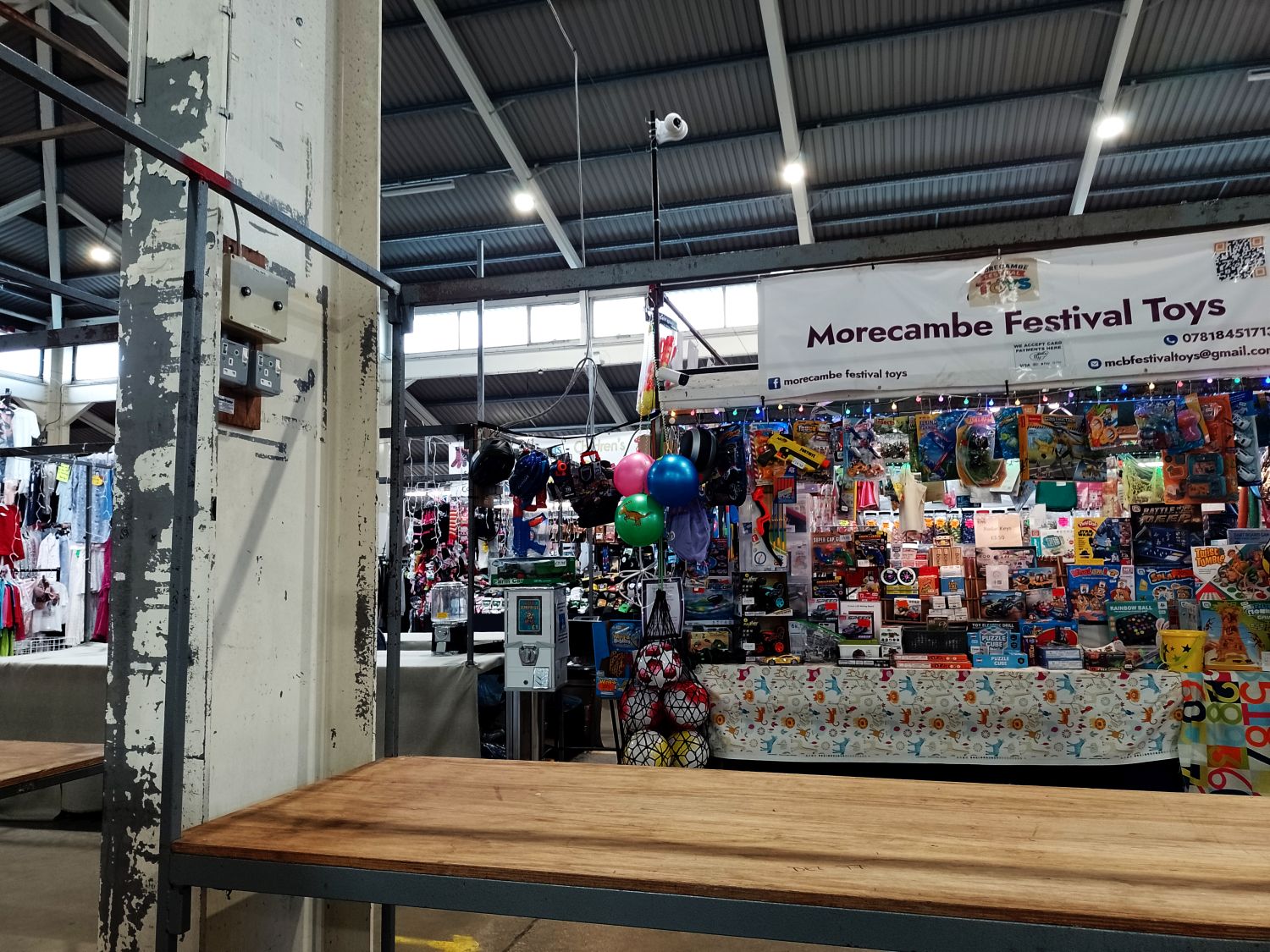 Known as the Festival Market, I dimly remember when it was located down Euston Road way on the opposite side of the town, it does actually sell useful things alongside the more esoteric stuff.Exhibit A Speaking of useful things. I’ve been looking for one of these latches for a while, found one on the market. Result.Hmm, a toystall, how musch of my pocket money was spent at one of these.Pet stall and shoes, got to cover all the bases in this day and age.I looped my way across the road and onto the sea front, dining was in progress at the MIdland Hotel. Sadlt not the best od days to take in the views across the Bay. There were some seats free for those hardy, well rapped up folk to enjoy the view.The town surprises from time to time with an elegant splash of colour.The evening was really starting to close in so I walked up to Bare at the top end of the town to have a drink in the Little Bare bar on Princess Crescent. It’s a favourite, a quiet, intimate place where you can join in or mind your own business overyour drink.While I was there I thought I would try a pint of Mr. Clarkson’s Hawkstone and very pleasant it was too.The day was moving on into night, it comes around so quickly at this time of the year. I made my way down to the station on Bare Lane and caught a train into Lancaster to link up with my train south to Wigan. I arrived at Lancaster with time enough for a comfortable drink in the station’s Tite & Locke bar, a Lancaster Brewery establishment with a fine selection of beers.My beer of choice to help me dry out from the rain and warm up from the cold, again the T&L is a cosy place, with an atmosphere made up of the travelling public and locals .