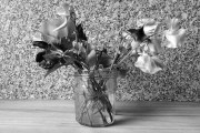 SNAPSHOT. From The Garden. Sweet peas In A Jam Jar. ( And A Rose )